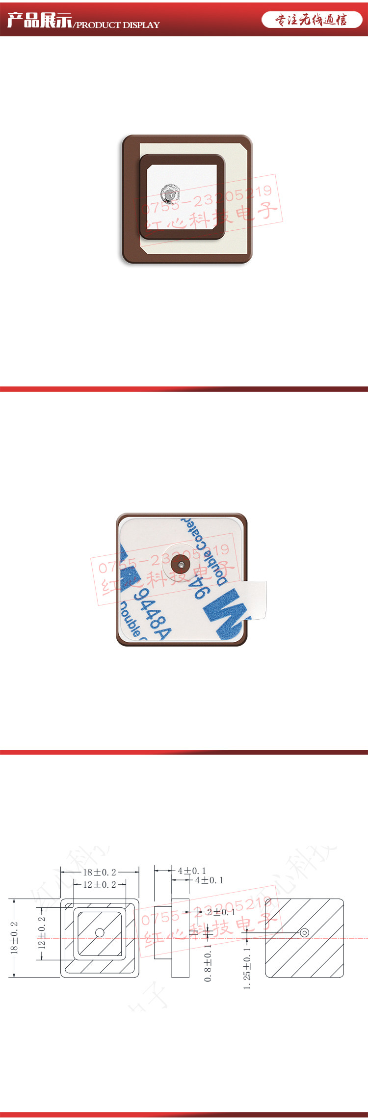 | 天线尺寸(Overal dimensions) | 12*12*2叠18*18*2 | mm |