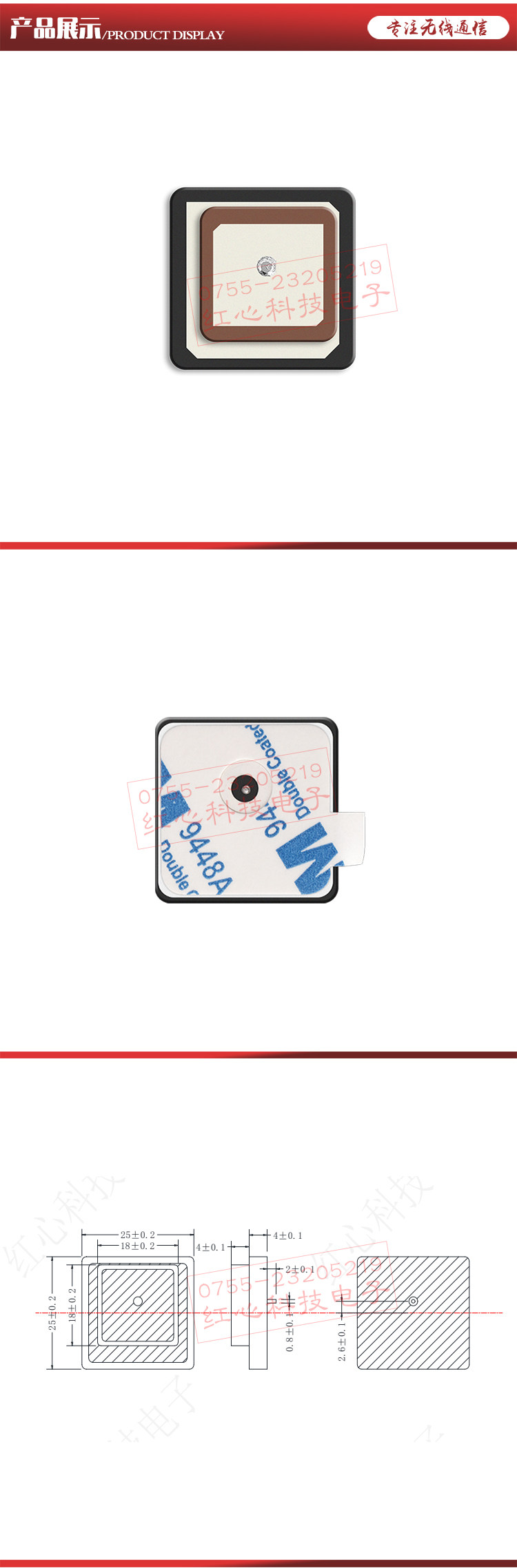 | 天线尺寸(Overal dimensions) | 18*18*4叠25*25*4 | mm |