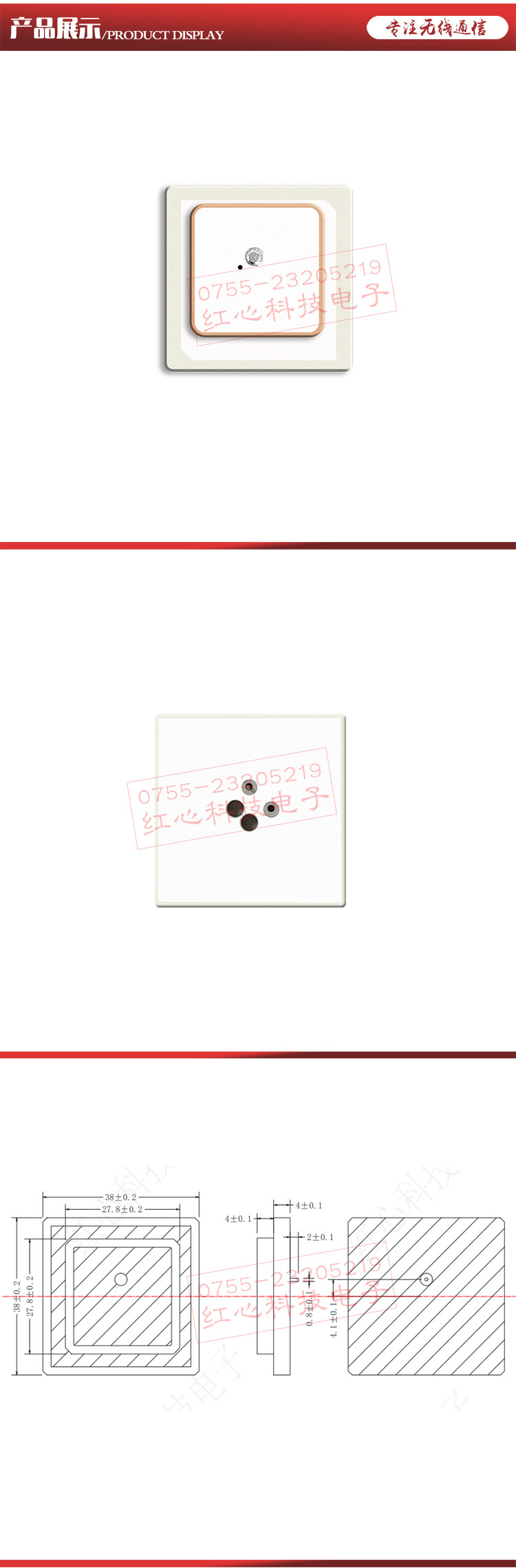 | 天线尺寸(Overal dimensions) | 28*28*4叠38*38*4 | mm |