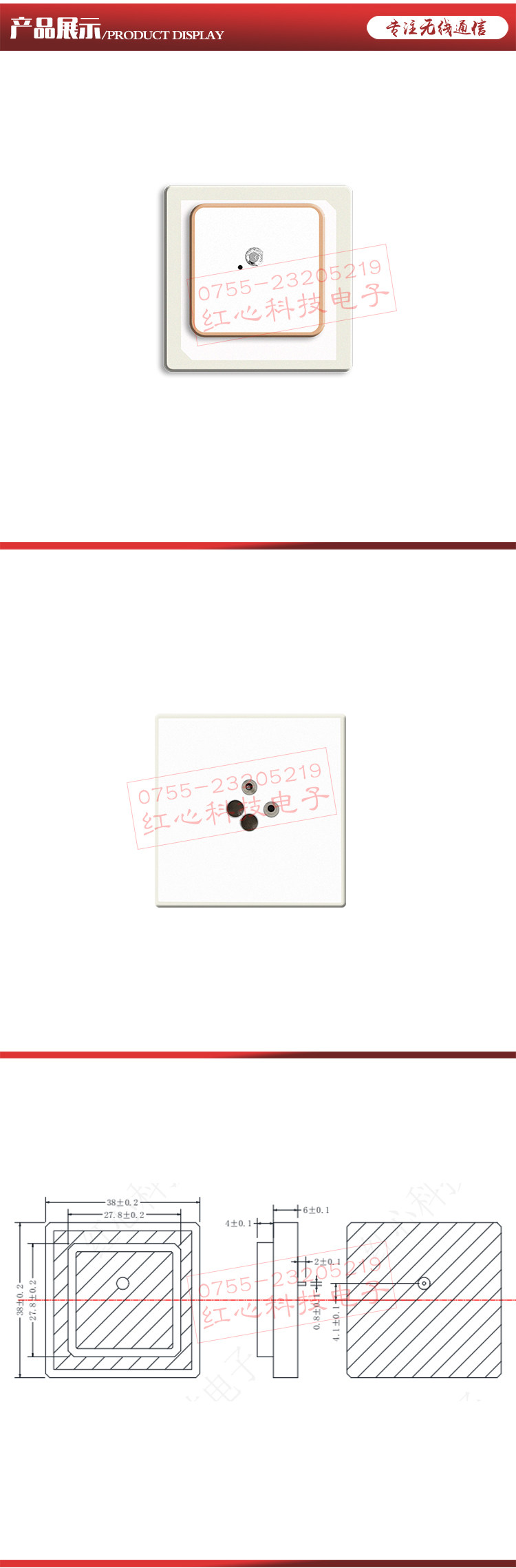 | 天线尺寸(Overal dimensions) | 28*28*4叠35*35*6 | mm |