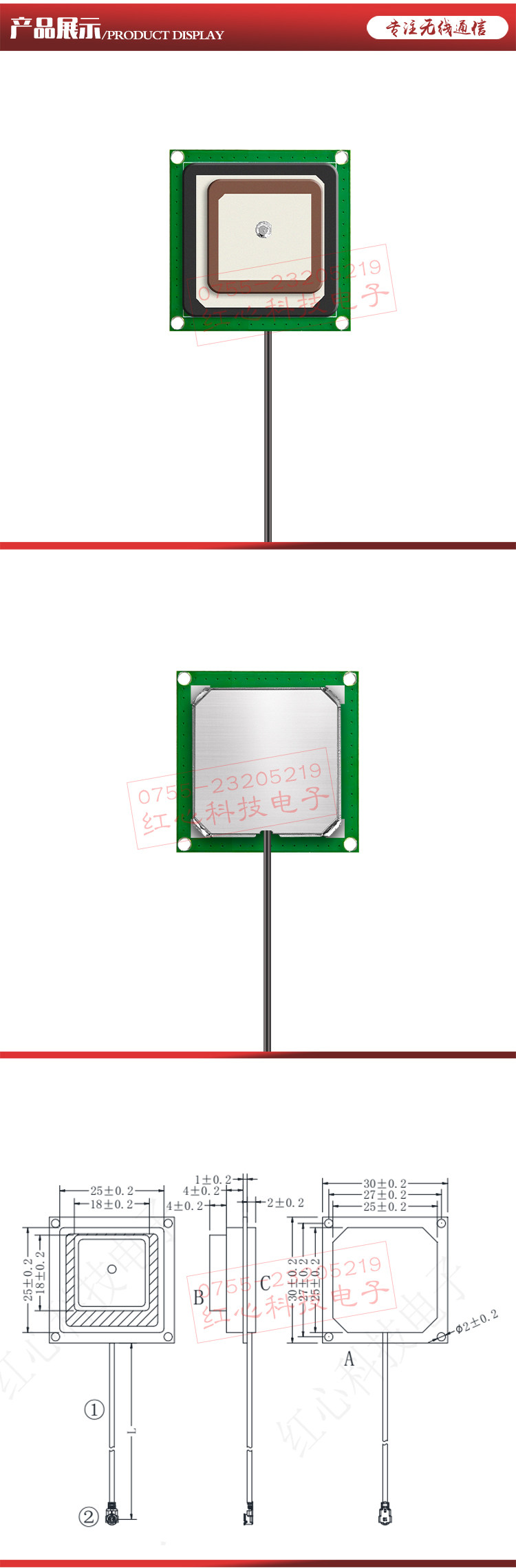 | 天线尺寸(Overal dimensions) | 18*18*4叠25*25*4 | mm |