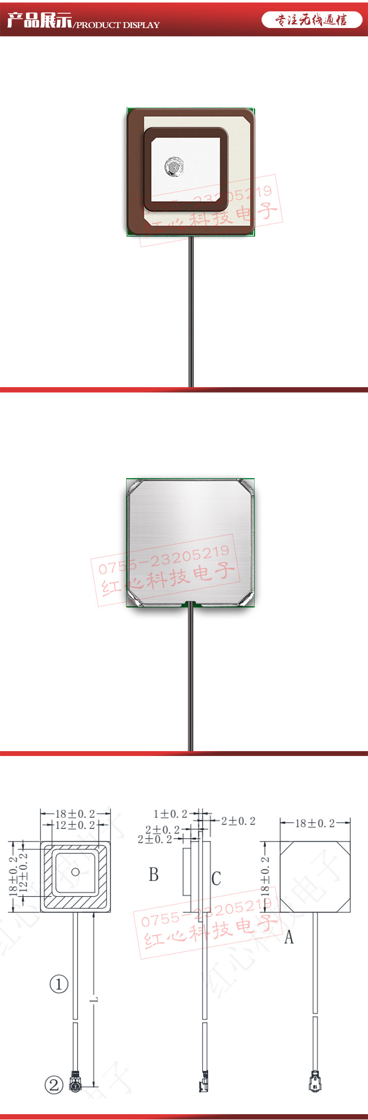 | 天线尺寸(Overal dimensions) | 12*12*2叠18*18*2 | mm |