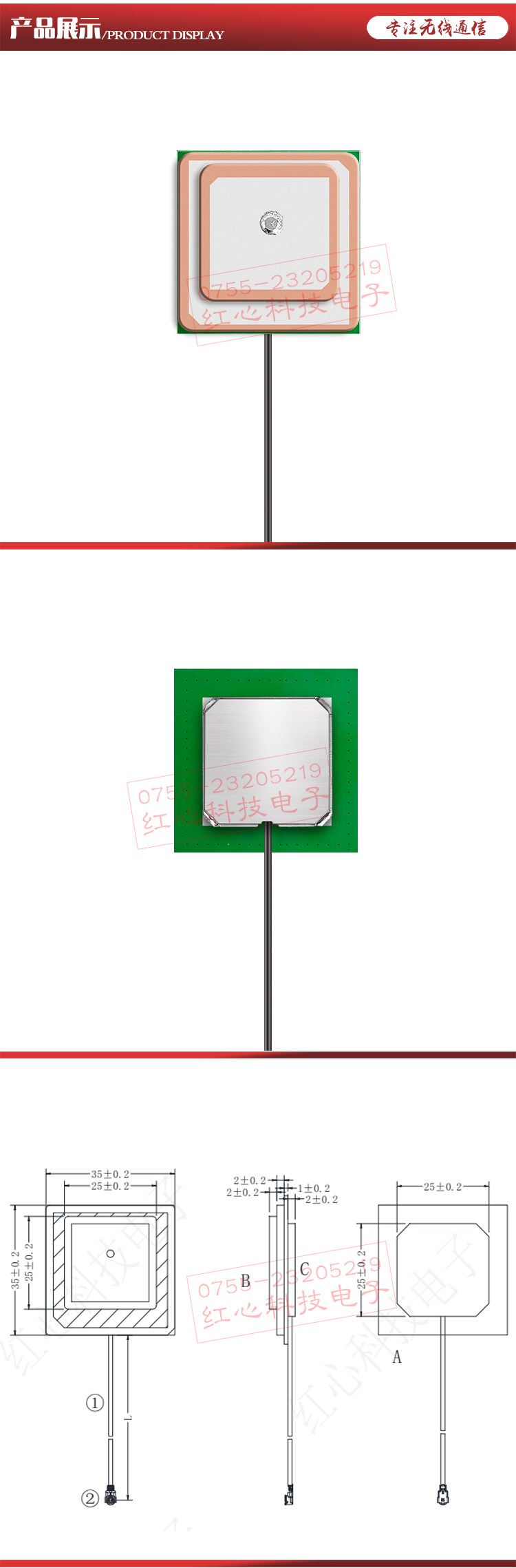 | 天线尺寸(Overal dimensions) | 25*25*2叠35*35*2 | mm |