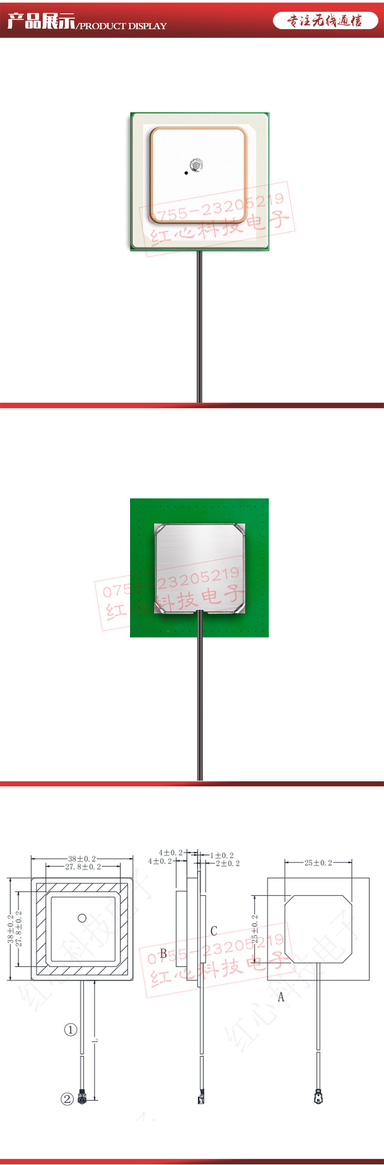| 天线尺寸(Overal dimensions) | 28*28*4叠38*38*4 | mm |